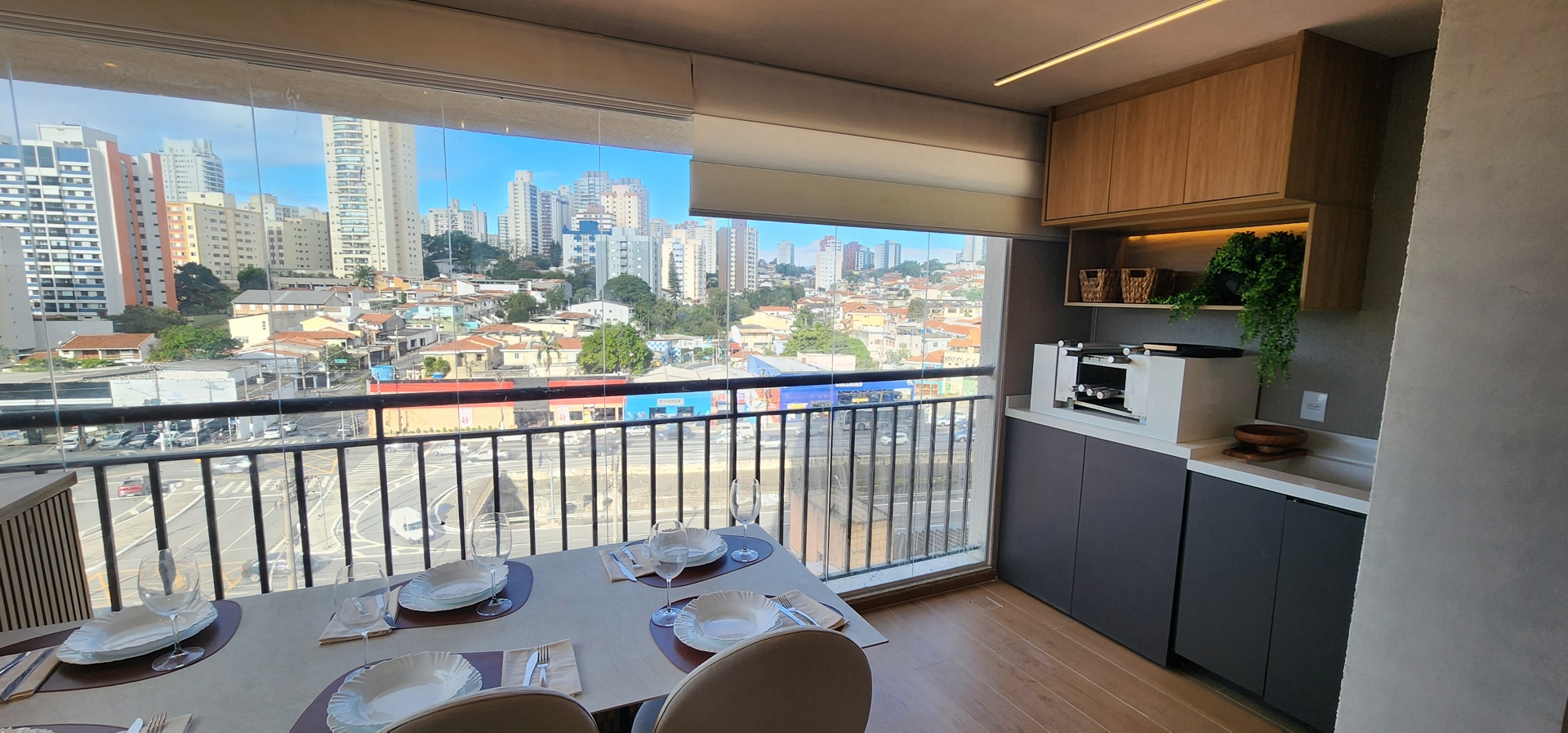 - Sacada gourmet espetacular, O cenário ideal para jantares memoráveis ou um café da manhã com vista privilegiada.